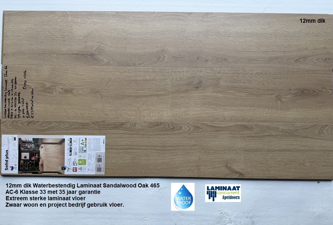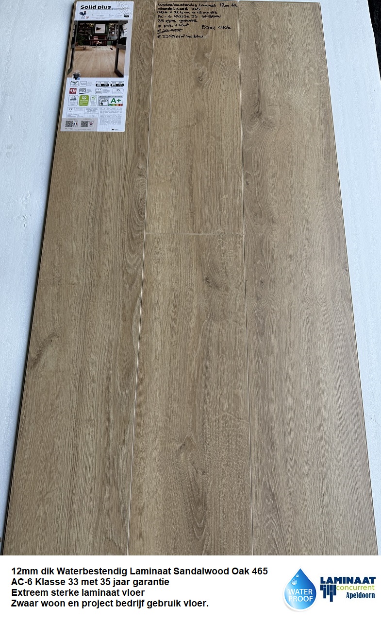 12mm dik Waterbestendig laminaat Sandalwood 465
