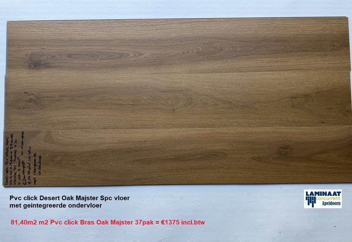 Nu : 81,40m2 m2 Pvc click Bras Oak Majster met integreerde ondervloer 37pak = €1375 incl.btw